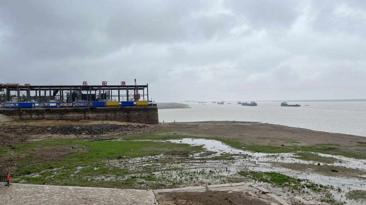 又去岳阳玩了, 各处缺水, 洞庭湖也是, 水位非常低.